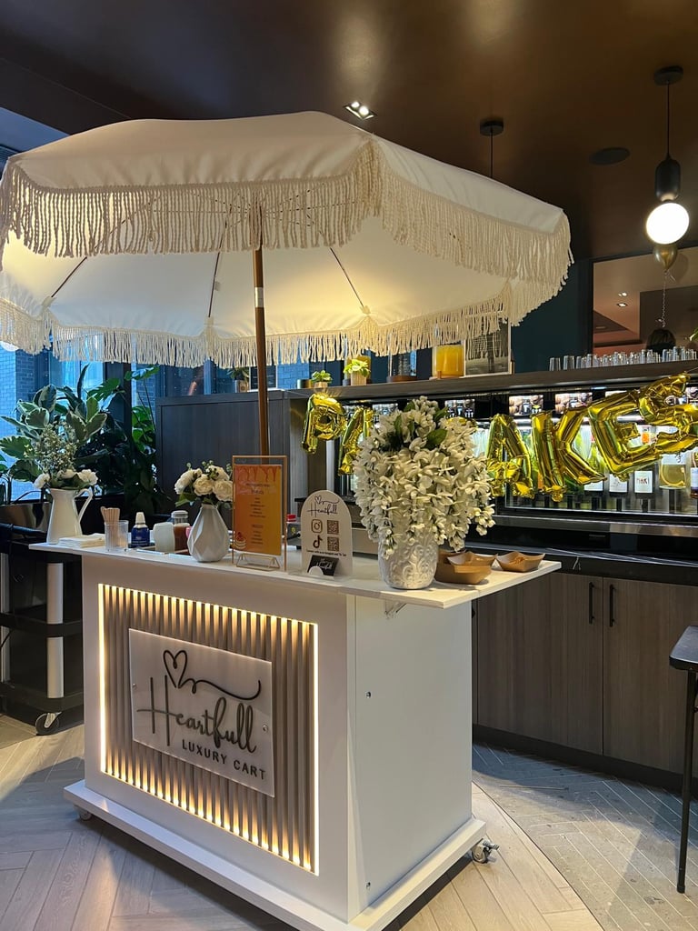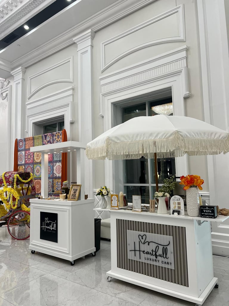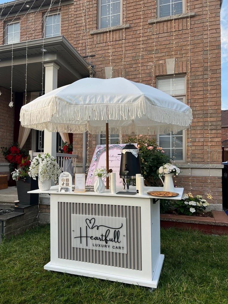 You can either choose our signature umbrella cart or the fully customizable cart to match your theme!